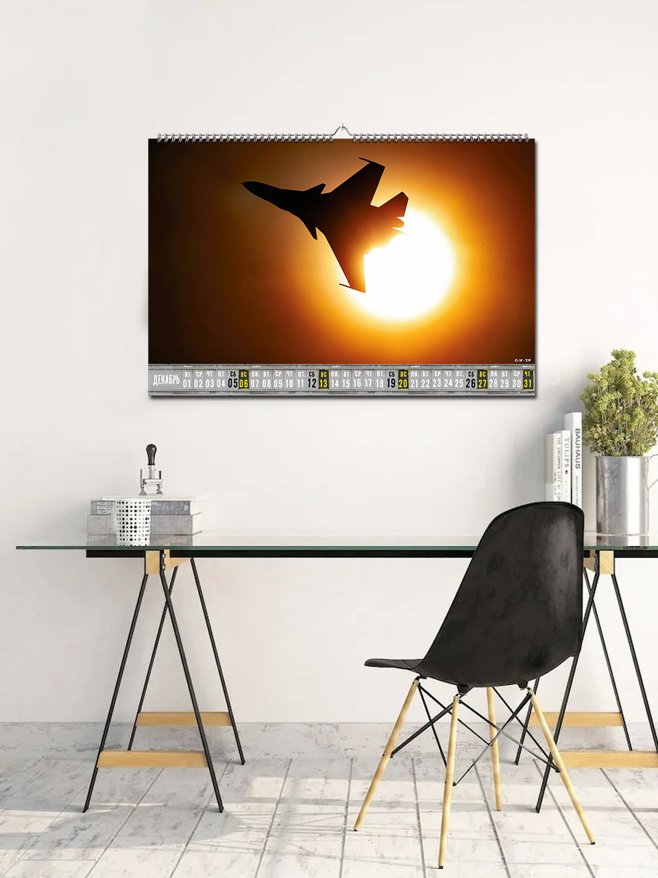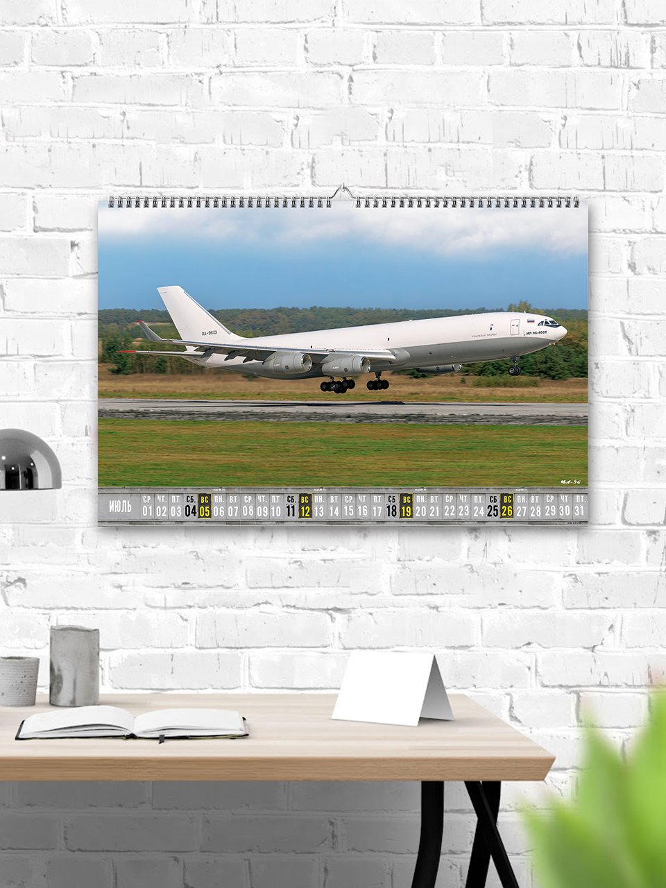 Авторский настенный перекидной календарь на авиационную тематику на ригеле с пружиной по длинной стороне