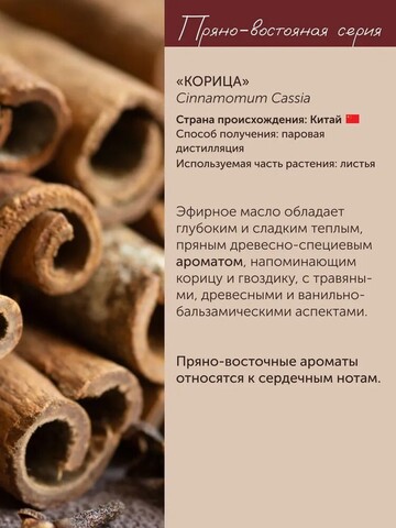 Масло корицы веселит, вселяет уверенность, придает сил, умиротворяет, купирует страхи, тревоги, волнения. Помогает при головокружениях, тошноте.