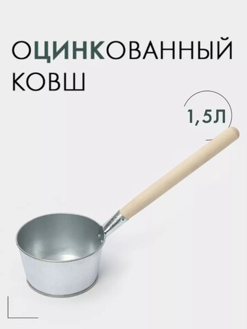 Этот металлический ковш объёмом 1,5 л. с деревянной ручкой для бани удобный, надежный и простой. Ковш служит для ополаскивания тела, для споласкивания полок, наливания и разбавления воды и прочее, прочее, прочее.