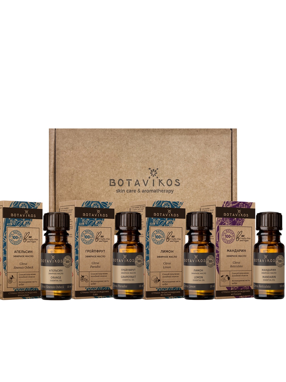 Солнечный, сочный и заряжающий энергией набор цитрусовых эфирных масел. Его аромат поднимает настроение, помогает справиться с усталостью и наполняет радостью. Подходит для ароматерапии, ухода за кожей и домашних СПА-ритуалов.
