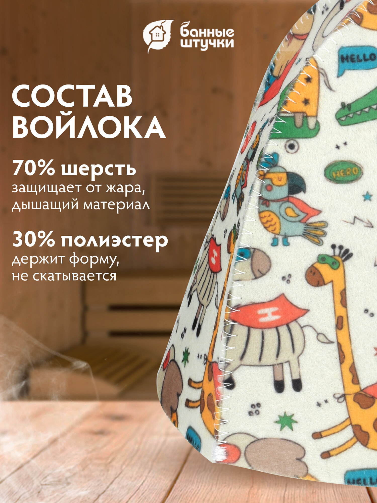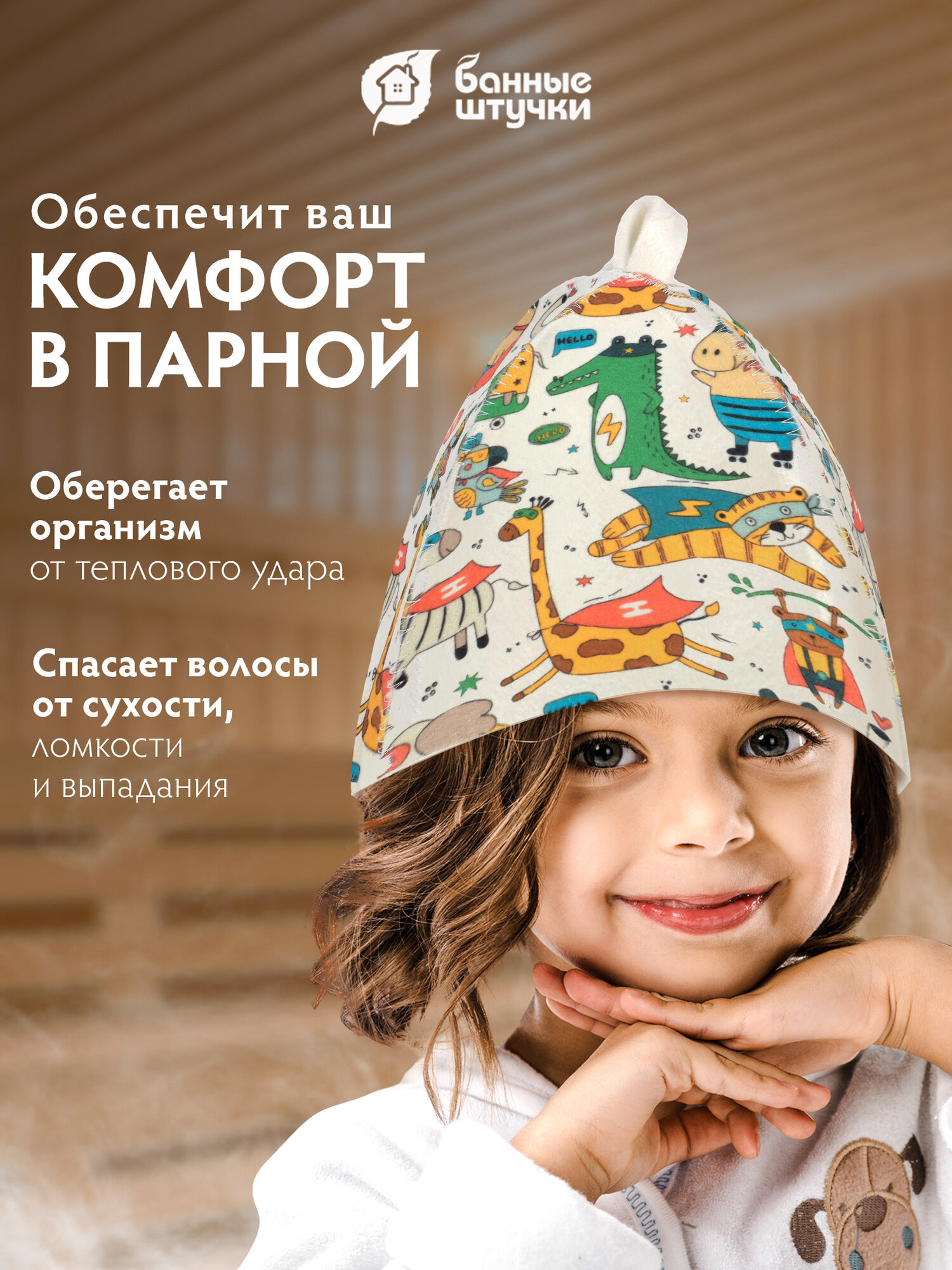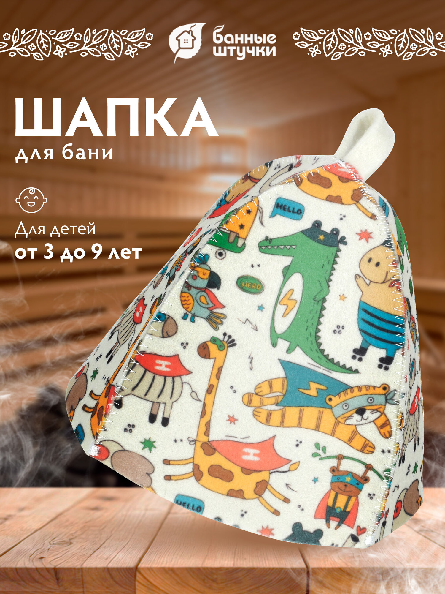 Детская шапка для бани и сауны Детская из мягкого фетрового полотна с оригинальным рисунком.