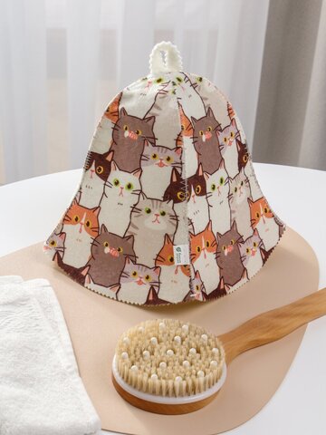 Детская шапка для бани и сауны взрослая "Котики" из мягкого фетрового полотна с оригинальным рисунком.