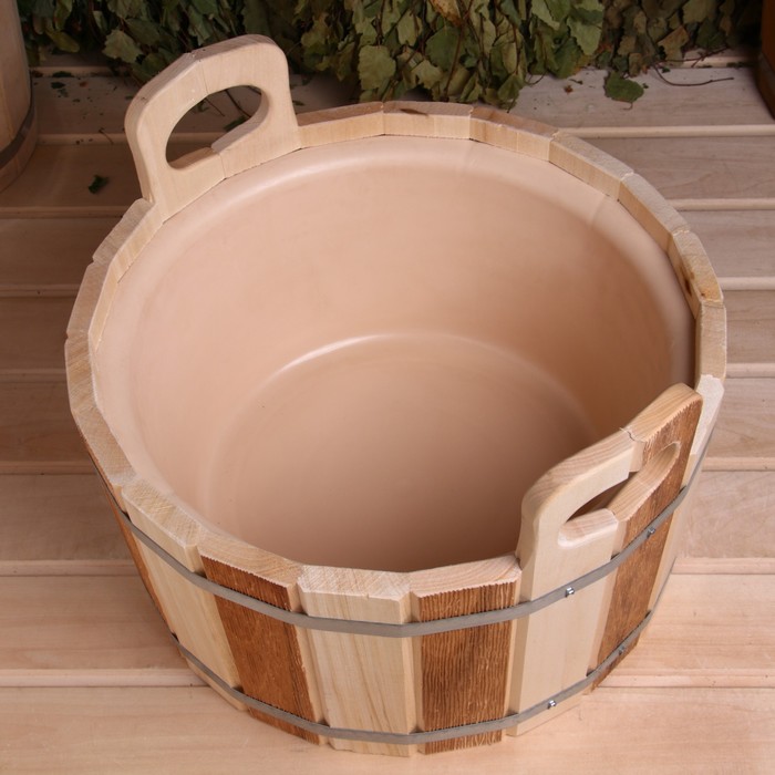 Оригинальная широкая удобная шайка. Внутри пластиковая вставка значительно повышает срок службы изделия.